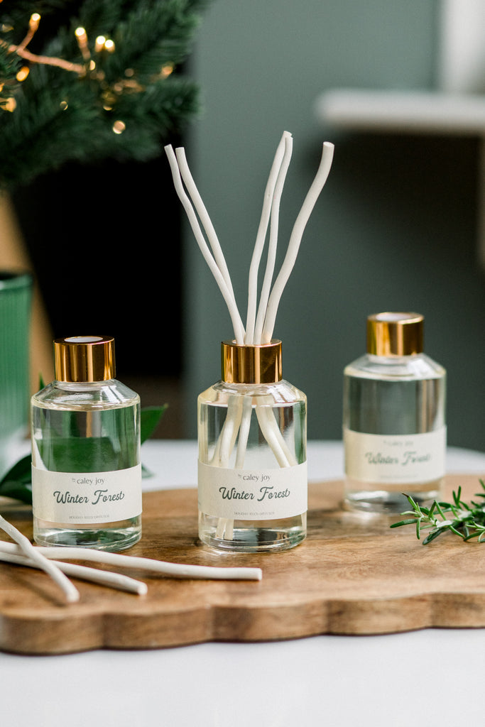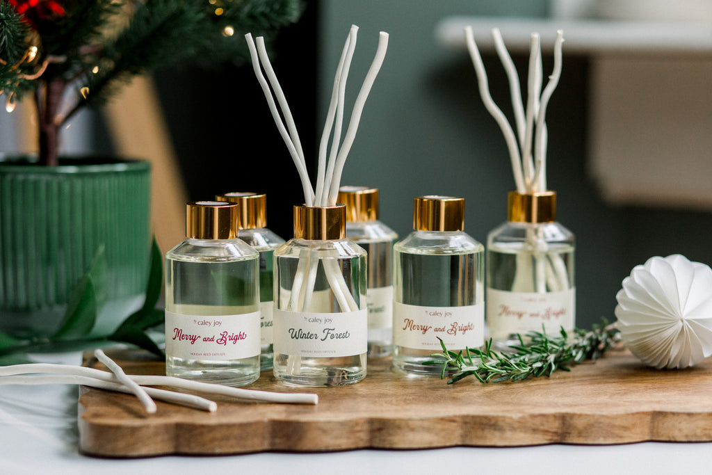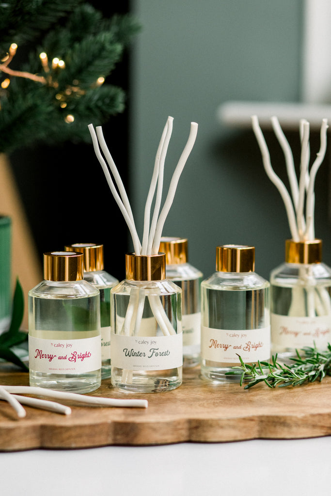 Bring the magic of the season into your home with By Caley Joy’s elegant reed diffusers, crafted to fill your space with warmth and joy. Each diffuser is presented in a beautiful glass vessel topped with a gleaming gold cap, adding a touch of understated luxury to any room.